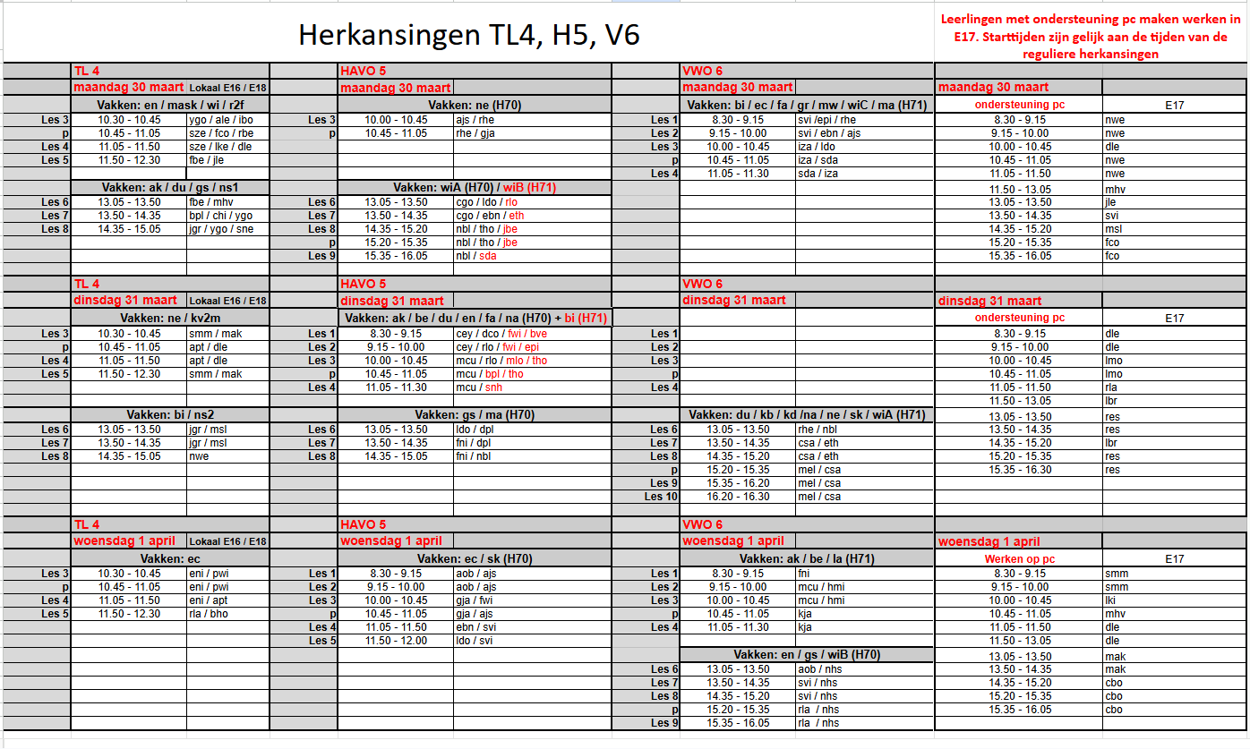 | Les 5 | kb3/bb3 | zw1c | SNec | STH2 | Aula2 | zelfstudie, zie werkplanner/magister/classroom voor huiswerk/opdrachten. |