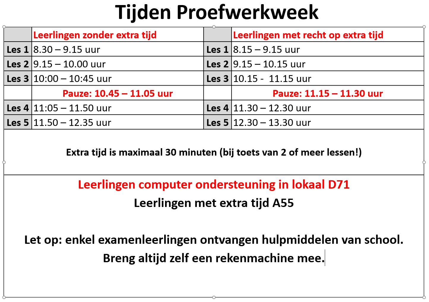 Maandag zullen er nog enkele lokaalwijzigingen zijn voor de 2de proefwerkweek.
