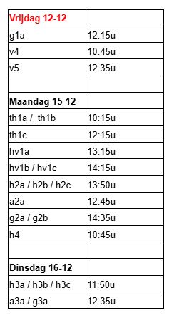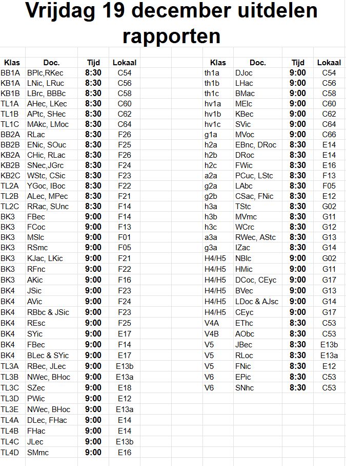 Hier staan ook de tijden en lokalen voor leerlingen met recht op extra tijd.